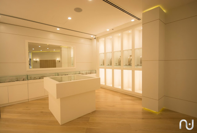 n dot interiors* completed Deema’s showroom featuring white textured panels and LED lighting as the main elements of
